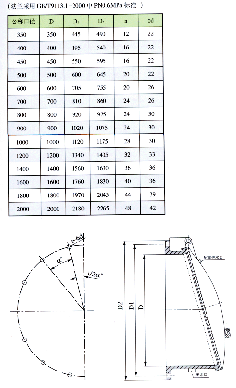 3.配套法蘭采用GB/T9119-2000中PN0.6MPa系列II標(biāo)準(zhǔn),如需配套法蘭,請(qǐng)?jiān)谟嗀洉r(shí)注明,亦可按照用戶提供的法蘭標(biāo)準(zhǔn)特殊制造。