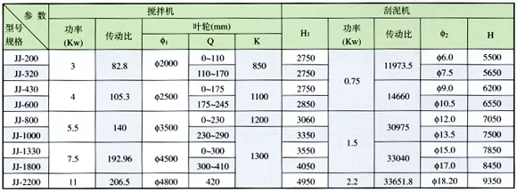 1. JJ200-600型攪拌機(jī)刮泥機(jī)為套軸結(jié)構(gòu),每種規(guī)格均可將攪拌機(jī)與刮泥機(jī)分開供貨。