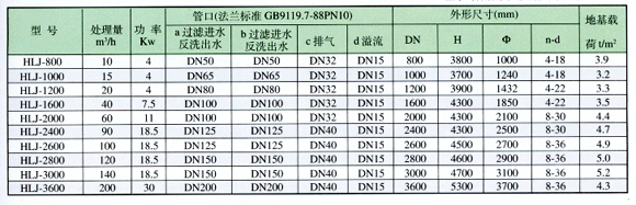 單臺(tái)HLJ型系列含油污水過(guò)濾器技術(shù)參數(shù)表